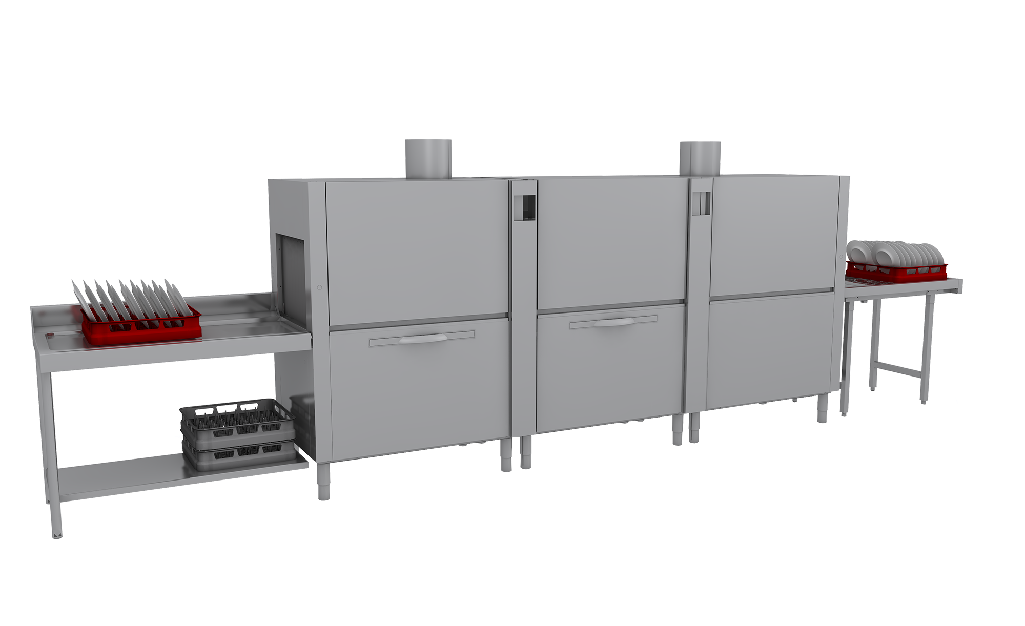 El lavavajillas de arrastre toptech está disponible en una configuración: 31-22, que incluye un dispositivo de recuperación de calor y un túnel de secado en línea, caracterizado por una tecnología muy avanzada y un consumo extremadamente reducido.