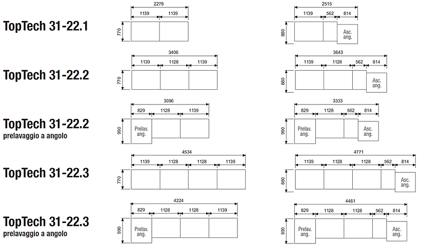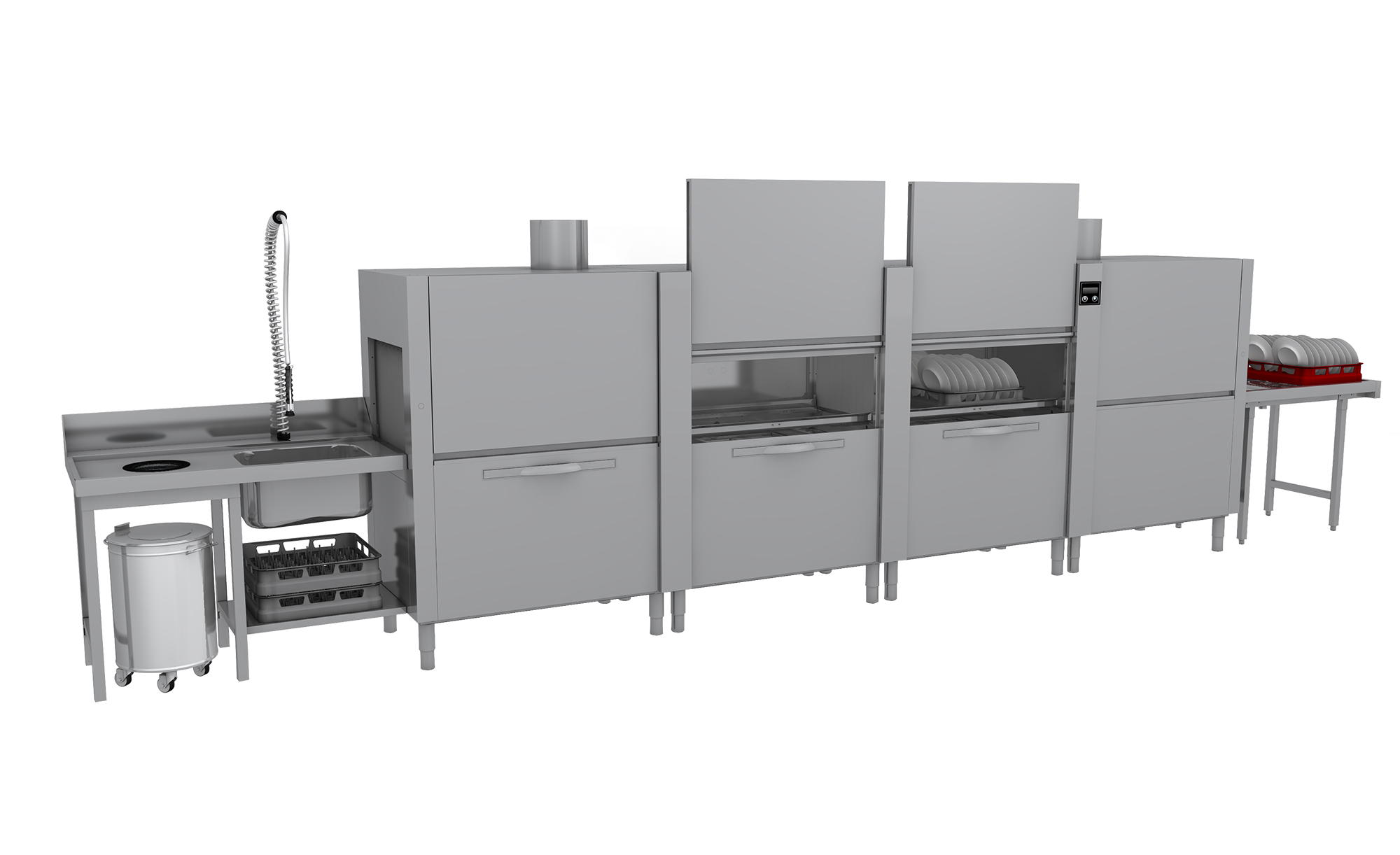 El lavavajillas de arrastre toptech está disponible en una configuración: 31-22, que incluye un dispositivo de recuperación de calor y un túnel de secado en línea, caracterizado por una tecnología muy avanzada y un consumo extremadamente reducido.