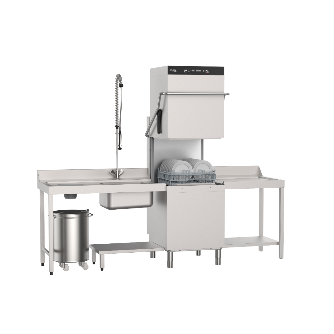 Gracias a este enfoque constructivo, la cámara de lavado no presenta puntos de acumulación de suciedad. Combinado con el fácil acceso a los canales de lavado y aclarado mediante el sistema InSpect, la limpieza se realiza de forma rápida y sin esfuerzo. El mecanismo de elevación ProGlide, suave y fluido, reduce la fatiga del operador. Diseñado para su instalación con mesas en línea o en esquina.