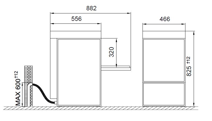 La unidad de ósmosis inversa está alojada dentro de la máquina, montada sobre una base de 10 cm de altura con un panel extraíble para facilitar la inspección. A pesar de ello, la altura total de la máquina se mantiene en unos compactos 82,5 cm, ideal para instalaciones estándar bajo mostrador. Todos los parámetros de funcionamiento se gestionan directamente desde la interfaz de usuario de la máquina.