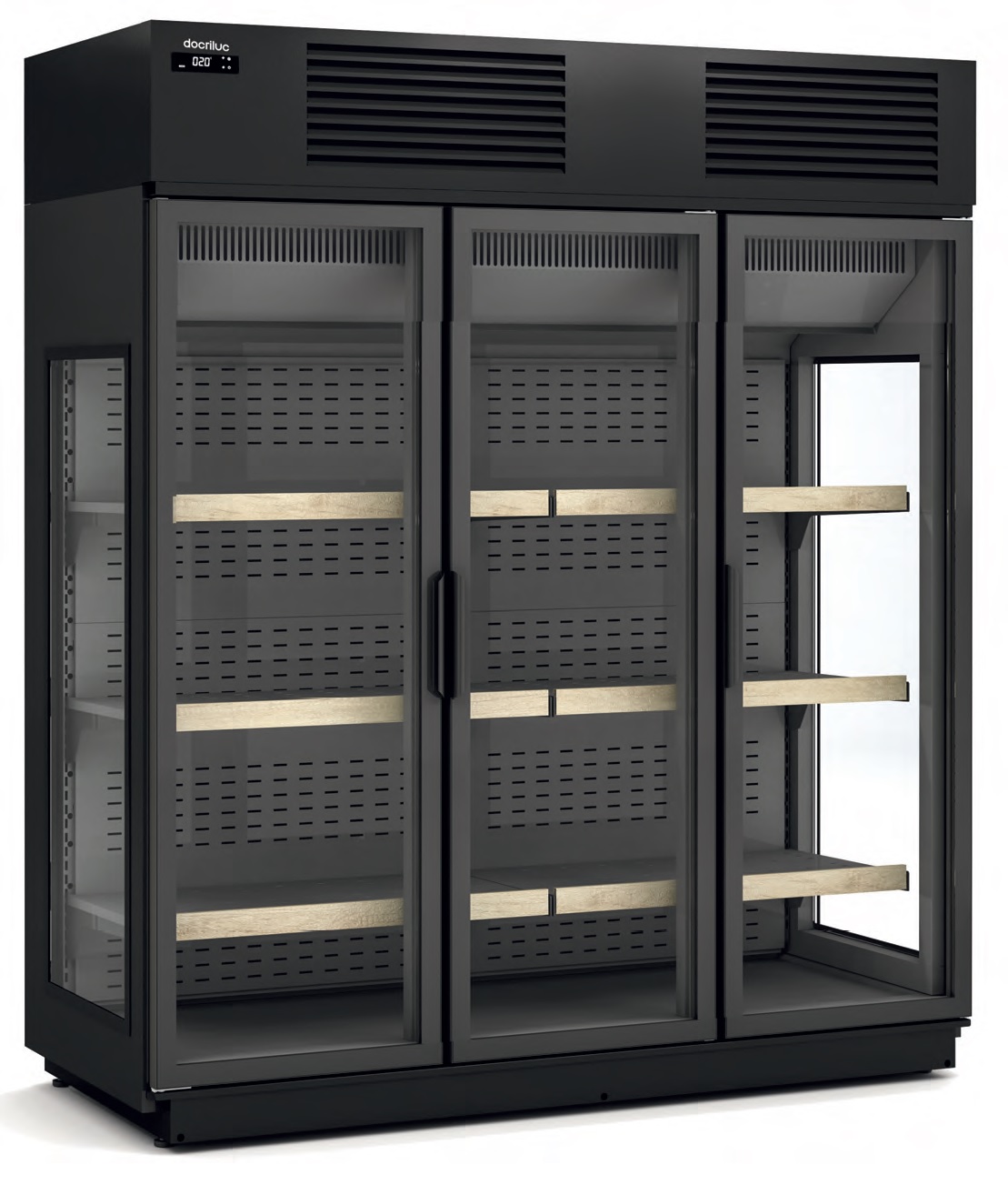 Los armarios Docriluc VITIS EFIWH cuentan con puertas calefactadas para evitar la condensación y mejorar la visibilidad del interior sin empañamiento.
