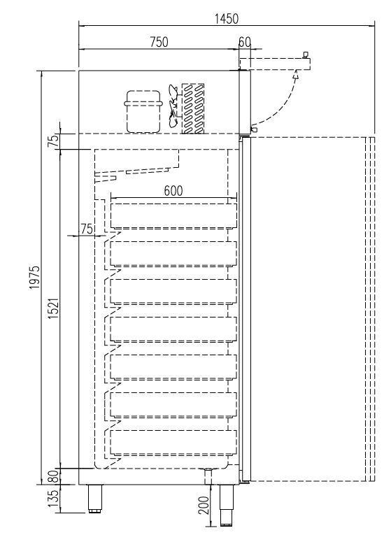 • Puertas de apertura reversible, con sistema de cierre automático y burlete magnético (permanece abierta al superar los 90° de apertura)