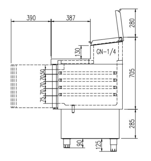 • Encimera inox, cubierta inox abatible sobre expositor ingredientes GN 1/4 -150