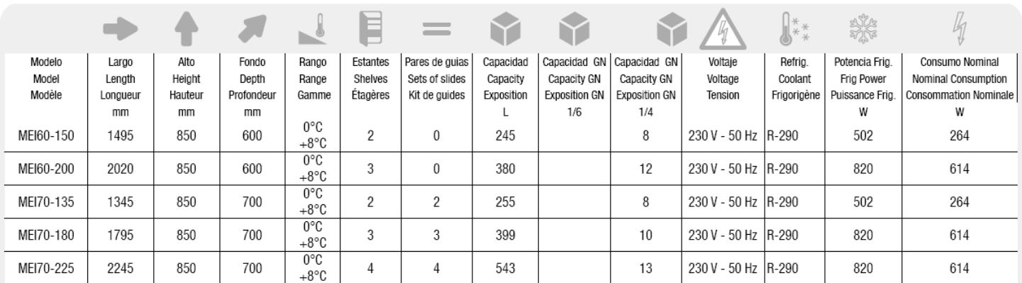 Categorías Frío Comercial, Mesas y Armarios