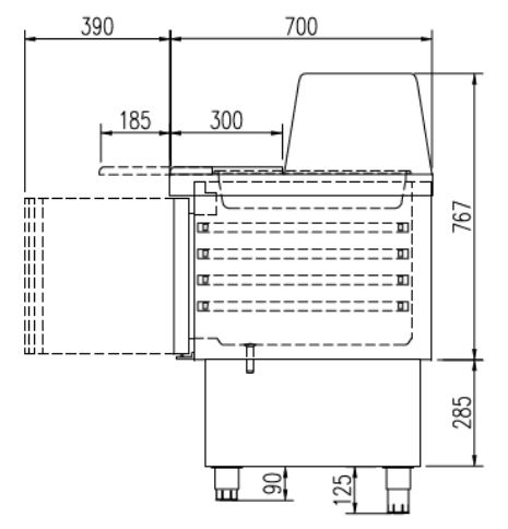 • Pies en tubo de acero inox ajustables en altura 125 200 mm