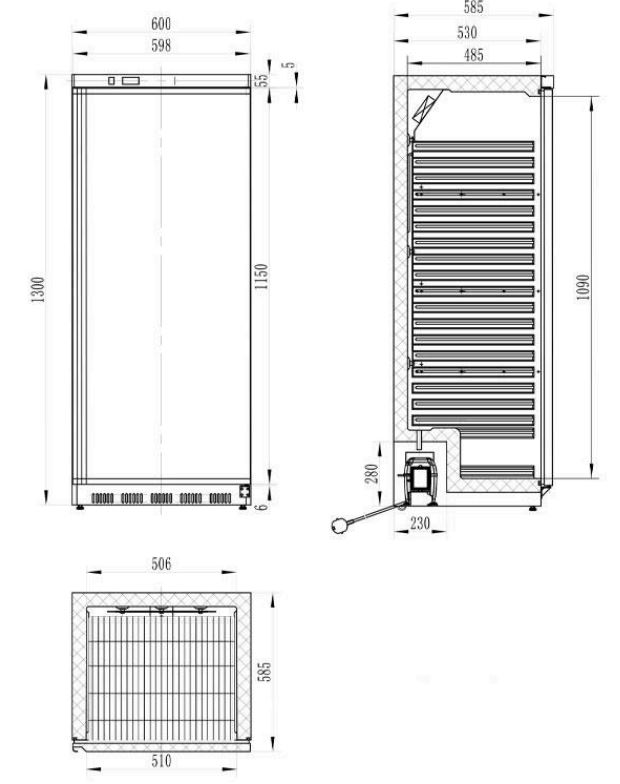 • Refrigeración estática, evaporador integrado en la pared posterior del armario.