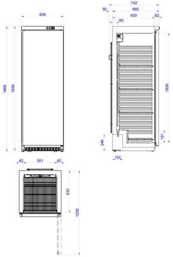 • Refrigeración estática, evaporador integrado en la pared posterior del armario.
