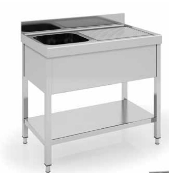 • 1 seno con escurridor a la Izquierda. Modelo con bastidor y estante.