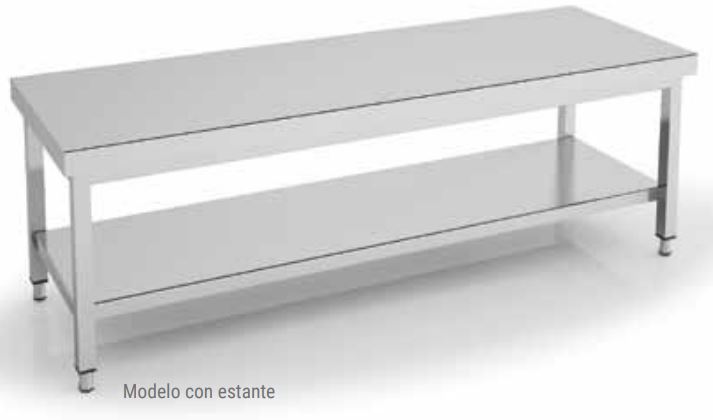 • Encimeras y estantes fabricados en acero inoxidable AISI304 18/10 acabado satinado y reforzados mediante omegas.