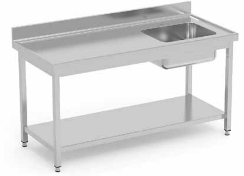 Inicio » Tienda » Inoxidable » ERATOS Mesa Mural con Cubeta, estante y perfil Vierteaguas Soldada; Serie 600; Modelo: MCCV60-200DE