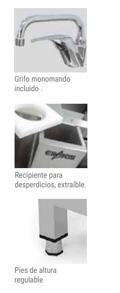 - Mesa fabricada en acero inoxidable AISI 304 18/10, satinado.