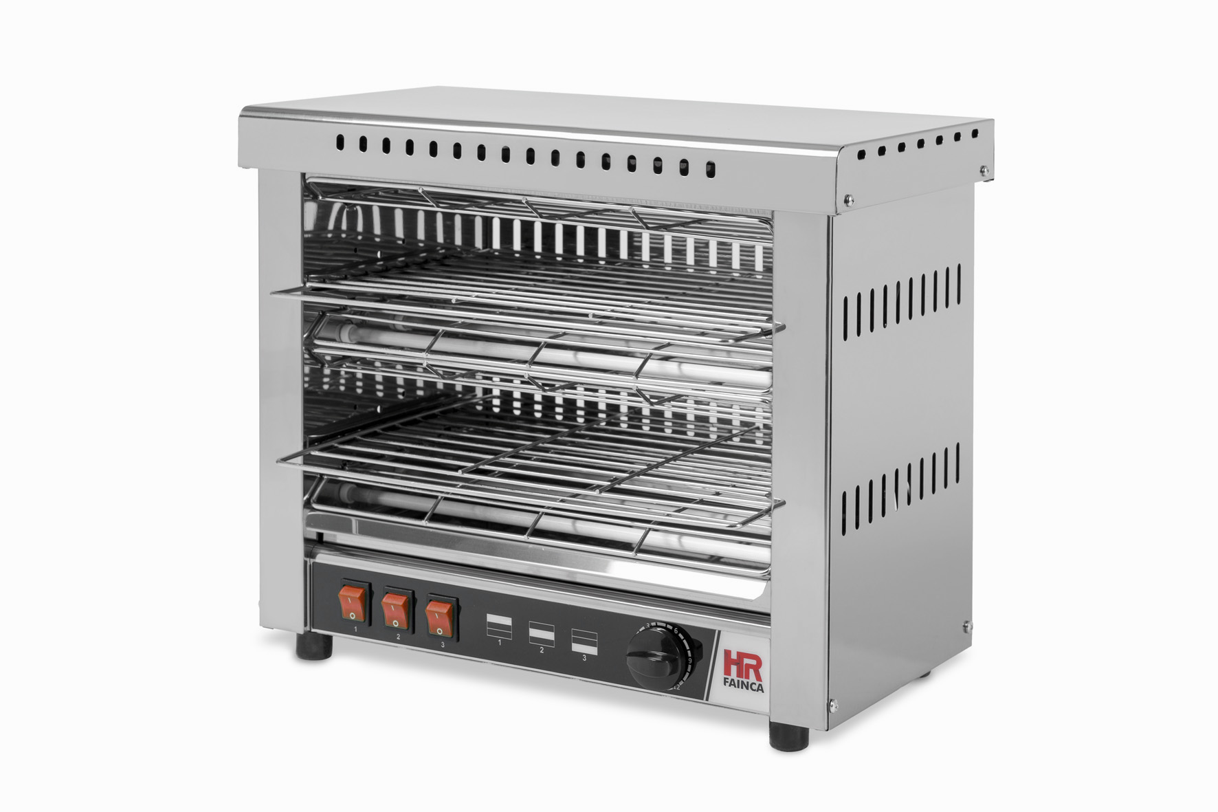 Tostadores de Fainca HR con los que conseguimos tostados perfectos y controlados del pan, así como el calentamiento de pequeños platos, tapas y raciones con el objeto de dar servicio en hoteles, cafeterías, colegios, caterings, etc. dentro del mundo de la Hostelería.
