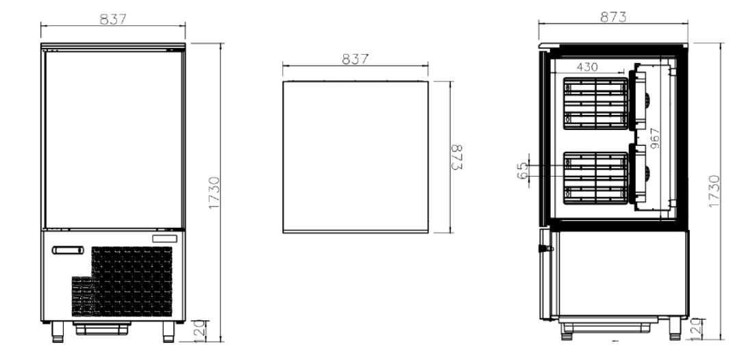 – Congelación rápido: +70ºC a -18ºC en menos de 270 minutos.