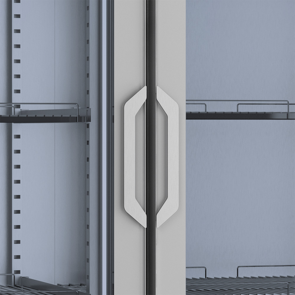 – Puertas de doble acristalamiento con bisagra pivotante y bloqueo de apertura.