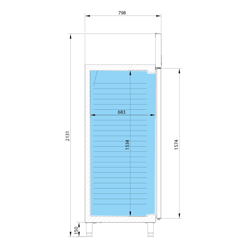 Armario refrigerado de la serie AGB de Infrico para hostelería. El armario está fabricado íntegramente en acero inoxidable AISI 304.