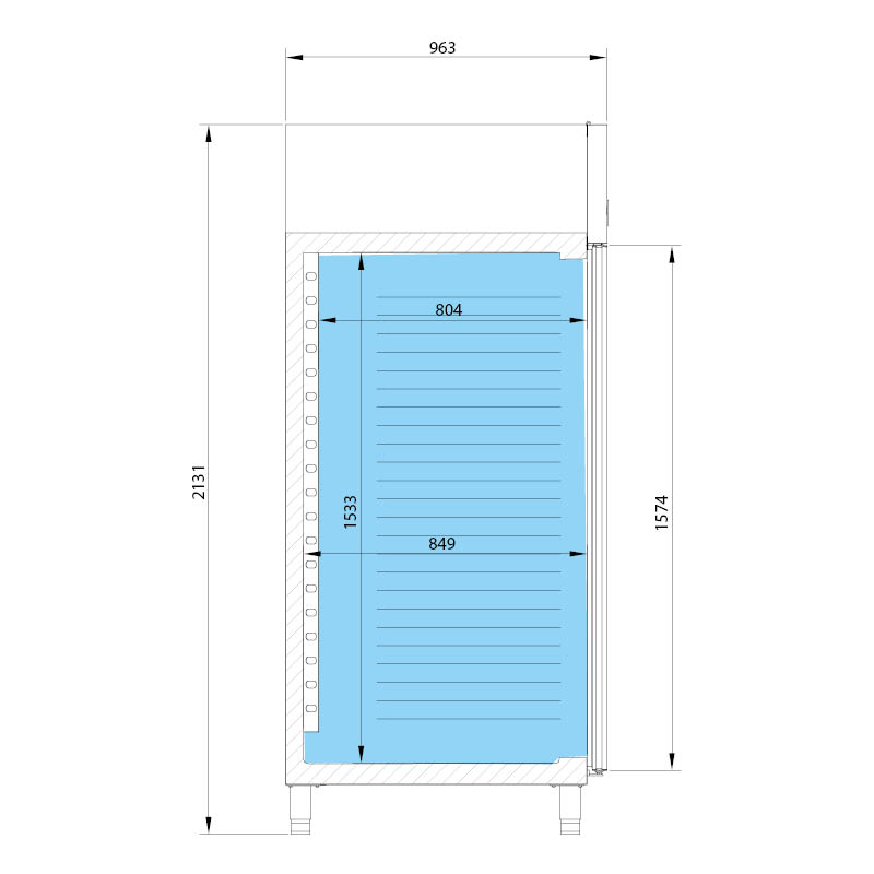 Armario refrigerado de la serie AGB de Infrico para hostelería. El armario está fabricado íntegramente en acero inoxidable AISI 304.