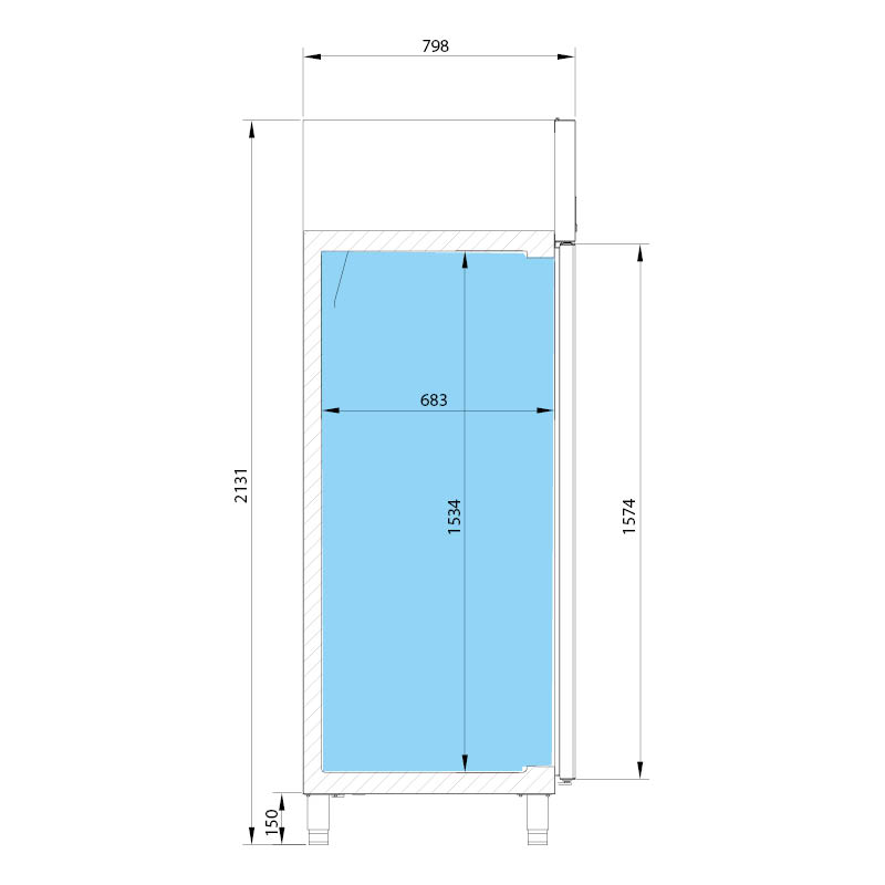 Armario refrigerado departamento pescados de la serie AGB de Infrico para hostelería. El armario está fabricado íntegramente en acero inoxidable AISI 304.