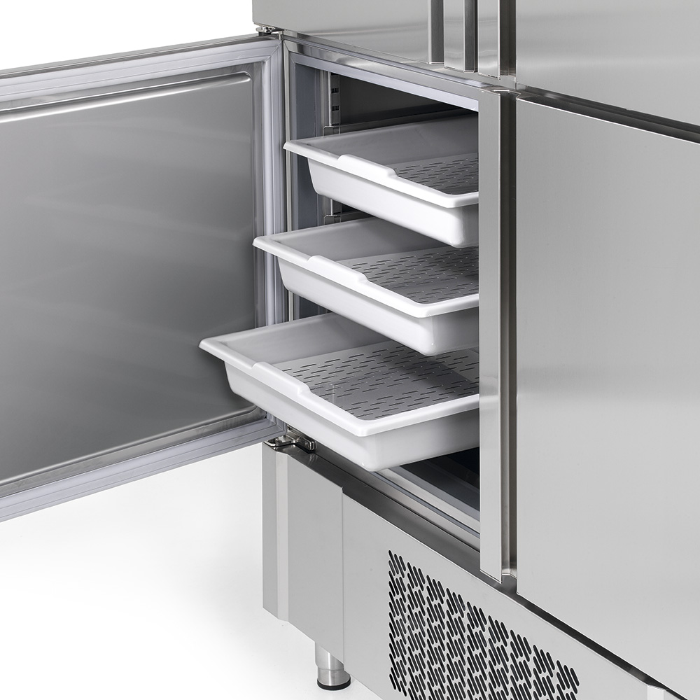 Armario refrigeración para pescados de la serie AN de Infrico para hostelería. El armario está fabricado íntegramente en acero inoxidable AISI 304.