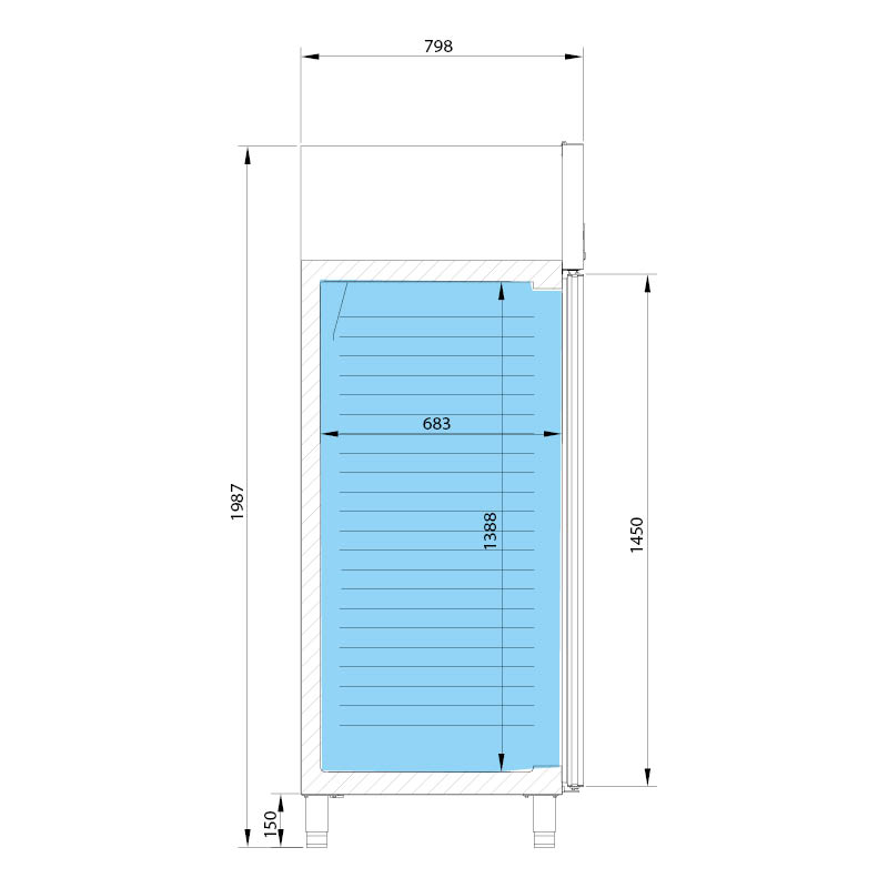 Armario refrigerado de la serie AGB de Infrico para hostelería. El armario está fabricado íntegramente en acero inoxidable AISI 304.