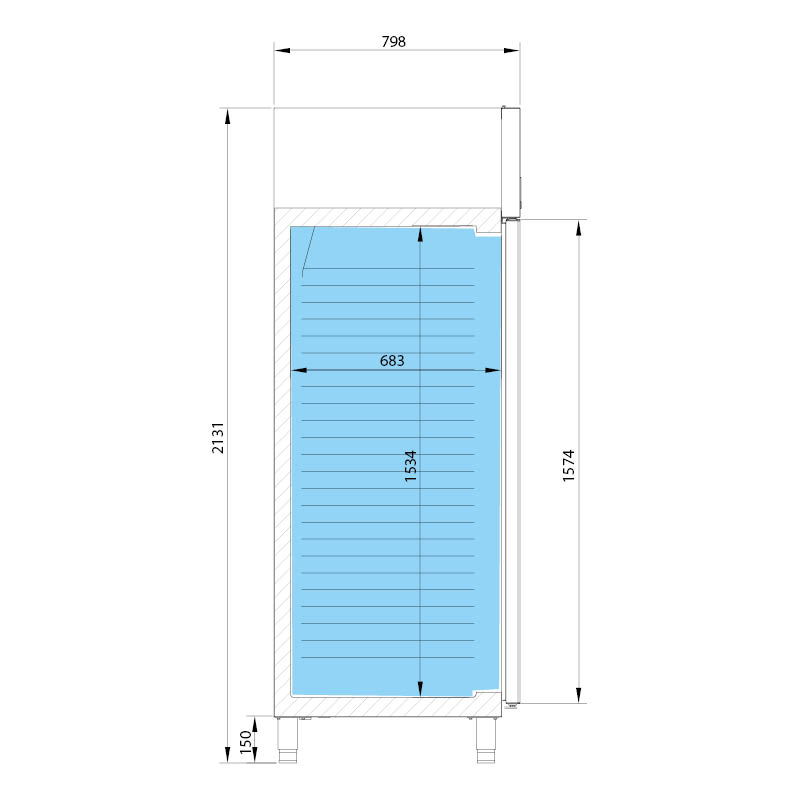 Armario congelado de la serie AGB de Infrico para hostelería. El armario está fabricado íntegramente en acero inoxidable AISI 304.