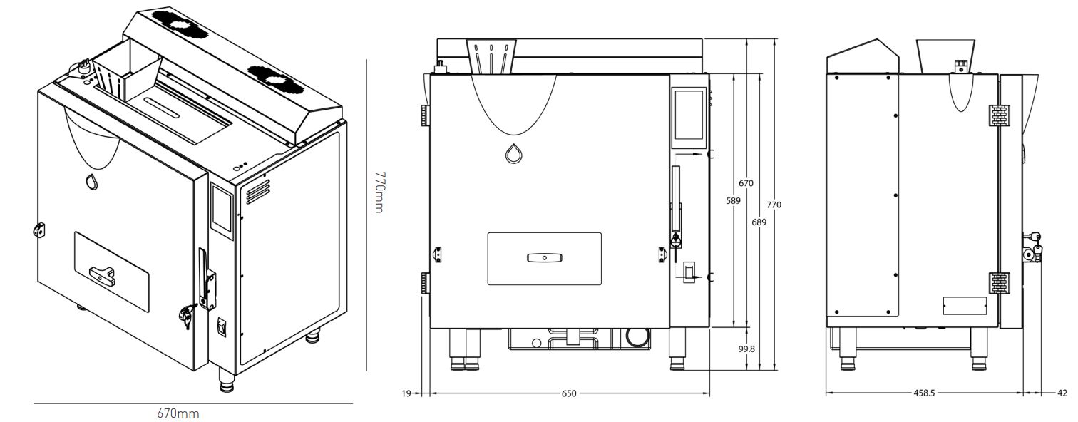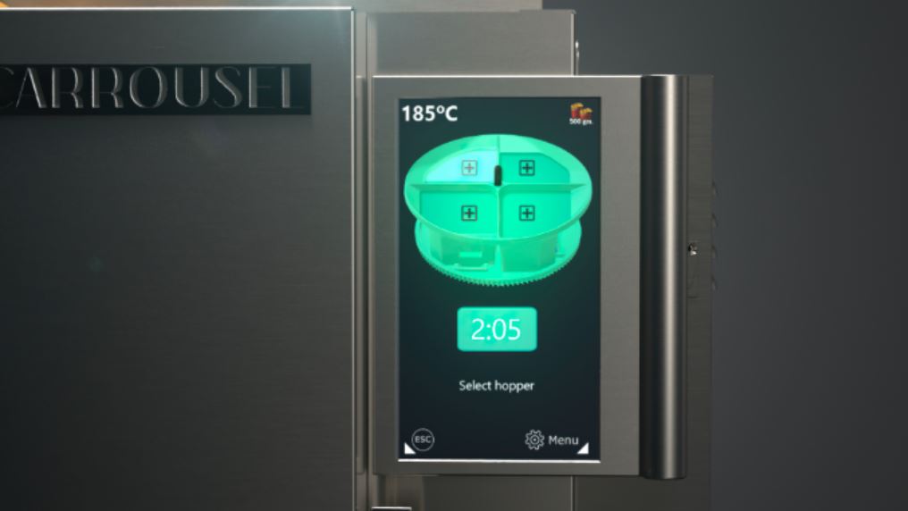 El sistema ECOFRY garantiza una fritura uniforme, reduciendo la absorción de grasa y conservando el sabor y la textura originales. Además, su módulo de fritura cerrado y vertical acelera los tiempos de cocción y evita la dispersión de olores.