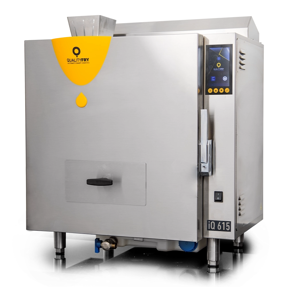 QualityFry iQ 615 Gourmet es una freidora profesional de alto rendimiento, desarrollada para cocinas que buscan optimizar espacio y eficiencia sin generar humos ni olores. Equipada con una pantalla táctil de 5 pulgadas y 8 programas automáticos, ofrece un control preciso, rápido e intuitivo del proceso de fritura.