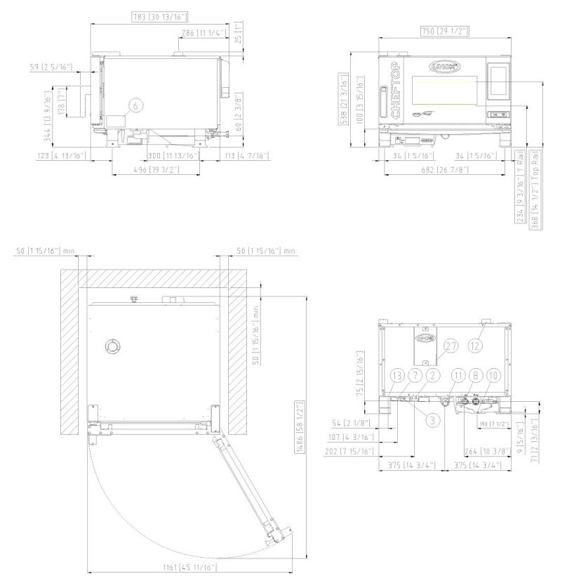 - Iluminación de la cámara de cocción mediante luces LED empotradas en la puerta