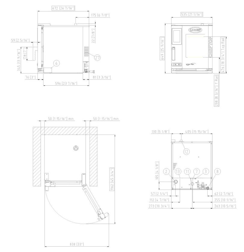 - Iluminación de la cámara de cocción mediante luces LED empotradas en la puerta